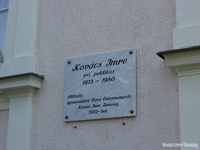 Kovács Imre emléktáblája Budapesten, egykori lakóhelyén a Nyár Pál utcában
