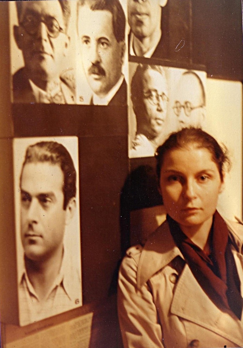 Kovács Imre leánya, Andrea Leslie Kovács Budapesten édesapja portréja előtt