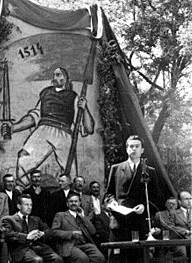 Kovács Imre beszél a ceglédi Dózsa ünnepségen |